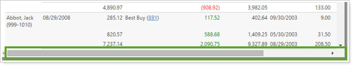 Horizontal Scrolling on the Dynamic Realized Gains/Losses Report