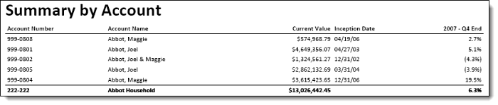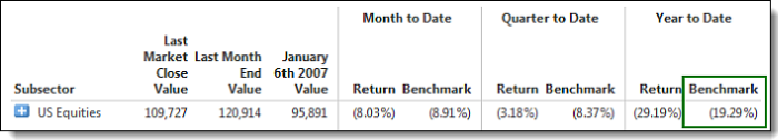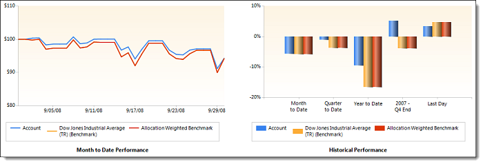 We received several user requests for a blended benchmark that adjusts its blend each day based on the value of account holdings in each category, such as asset class, security type, and sector. With this release, you can add allocation-weighted benchmarks to the dynamic Account Performance report and your PDF templates.