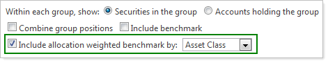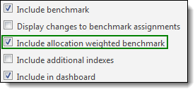 - Select the Include allocation weighted benchmark by check box, and in the list, choose the category that you want to use for the benchmark.