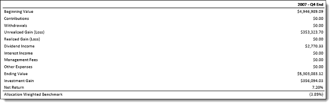Click Save. The allocation-weighted benchmark will appear on the report.