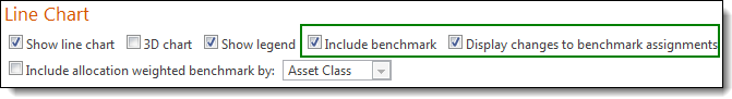 Under Line Chart, select the Include benchmark and the Display changes to benchmark assignment check boxes.