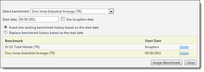 Insert into existing benchmark history based on the start date.Selecting this option will insert the selected benchmark into the account's comparison history based on the start date.