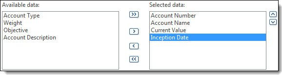 To add a column to the report, in the Available data box, click the column you want to add and then click >.