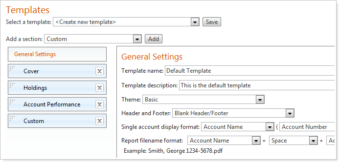 The new custom report section builder simplifies the process of creating custom report sections. You can use the custom report builder to create professional cover pages, envelope insert pages, newsletters, personal letters, and more.