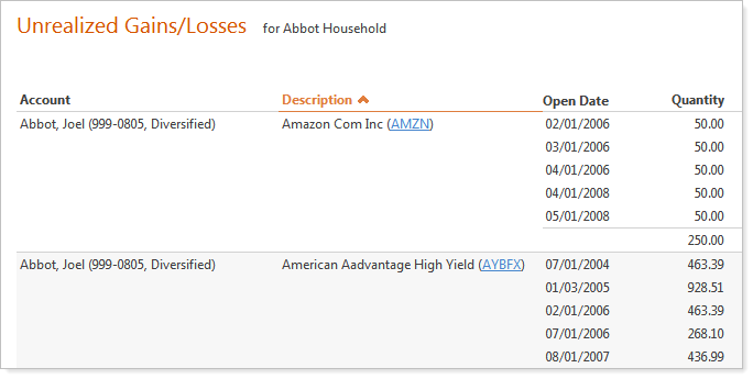 To create a consistent labeling of fields across reports, we've renamed the Buy Date field on the Unrealized Gains and Losses report to Open Date.