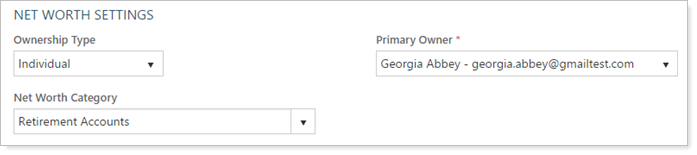 Account - Net Worth Category: Displays selected category from among your firm's categories. You can add new categories via upload.