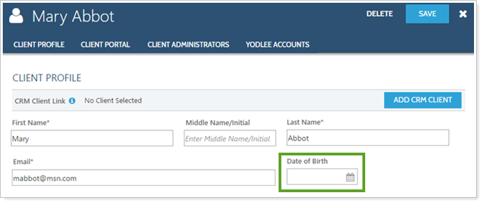 We've made it easy for you to quickly add Date of Birth to existing clients using bulk reports and bulk uploads. To quickly edit existing clients, in the Client Information bulk report, add the Date of Birth column to the report. Run the report, edit the data as applicable, and upload the file as a Client Information data set. Dates must be uploaded in MM/DD/YYYY or M/D/YYYY format. You can enter any past date. Future dates are not accepted.