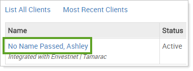 This also helps resolve an issue for users of the MoneyGuidePro integration, where clients without a last name in Advisor View showed up in the MoneyGuidePro Clients list with No Name Passed in the last name field.
