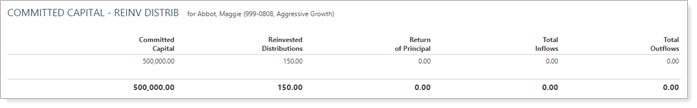 Now, you can add reinvested distributions to manual securities, ensuring that performance calculations remain accurate. The remaining capital is adjusted as appropriate. The Committed Capital report accurately reflects the reinvested distributions, which do not create flows or impact performance.