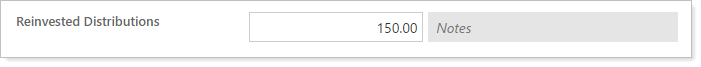 You can add either positive or negative reinvested distribution amounts and include notes. Values entered will impact cost basis as appropriate.