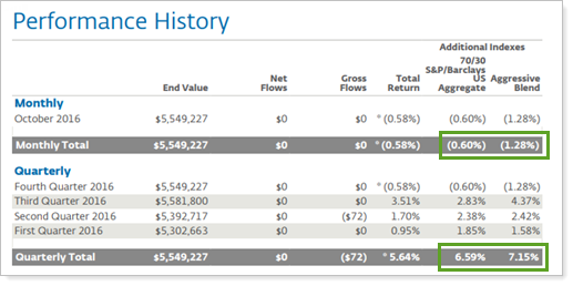 See Benchmarks and Indexes Subtotaled on the Performance History Report