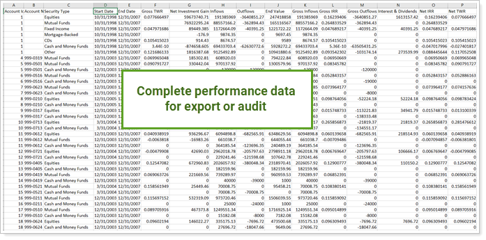 If you've ever wanted to evaluate performance of an asset class across accounts or groups, see the performance of unrelated accounts over certain intervals, or audit batches of uploaded performance data, the new Performance Data Extract bulk report is for you.