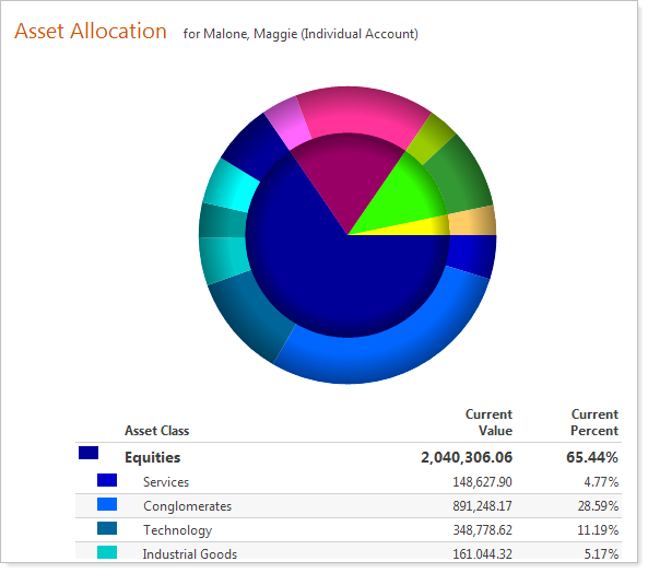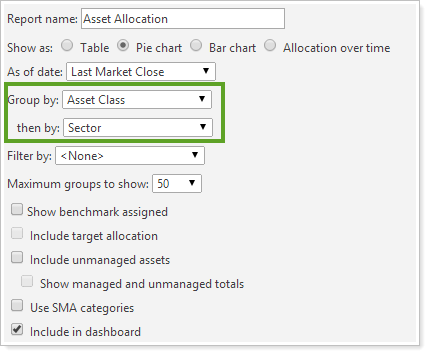 Sometimes when you're running the Asset Allocation report, you want to drill-down between categories. For example, let's say you want to group by asset class and then show the sector. Now, you can choose up to two groupings for the report.