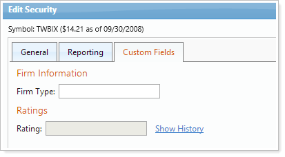 In some cases, you may want to add a custom field to a security. For example, let's say you want to use a custom bond rating classification system and then generate reports or view audit history information on your screen for when a rating is either upgraded or downgraded. With this release of Advisor View, you can add custom fields to any security and then run PDF reports using custom security information.