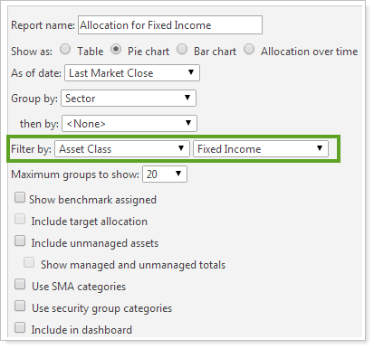 Other times you may want to focus only on one category. With this release, we've added the ability for you to limit your asset allocation report to a specific category such as Fixed Income.