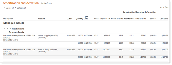 Over the past few months, we've been working hard to bring you the Amortization and Accretion report – and we're incredibly excited to finally share it with you. This new report displays the amount that each fixed income or mortgage-backed security has amortized or accreted over a specified period of time, and provides the necessary year-end fixed income tax reporting.