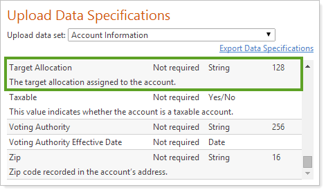 Once you create the target allocation, you can assign it using the Target Allocation field on the Account Information upload data set.