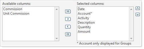 • To add a column to the report, in the Available columns box, click the column you want to add and then click >.