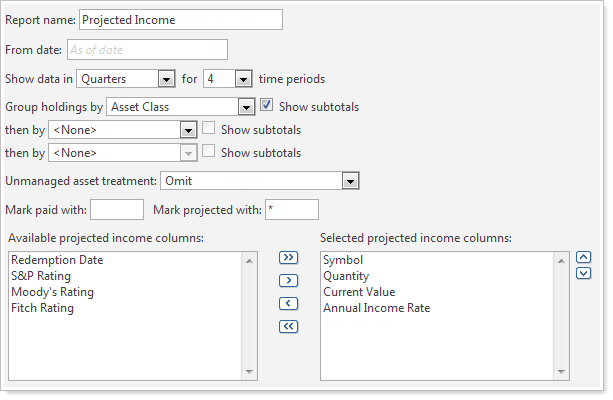 Choose how you want to label paid income on the report. The default option is not to label these items. However, projected income will be labeled with an asterisk.