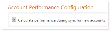 You also have complete control over whether or not you want Advisor View to calculate performance for new accounts during the sync. If you don't want Advisor View to calculate performance for new accounts during the sync, on the Setup menu, click System Settings. Under Account Performance Configuration, clear the Calculate performance during sync for new accounts check box and then click Save.