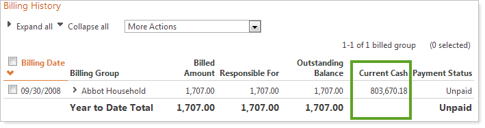 Current Cash on Billing History Report