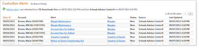 The integration of critical client data from Schwab Advisor Center within Advisor View also includes access to current custodial alerts.