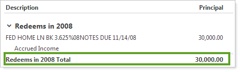 Total for Principal Column on the Bond Analysis Report
