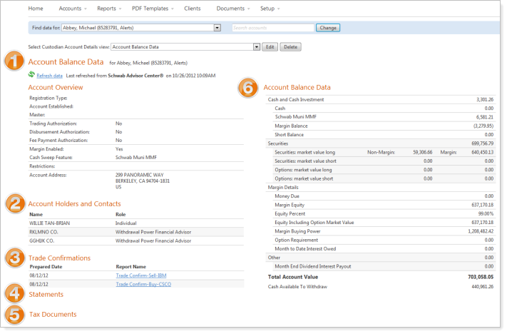 Envestnet | Tamarac has collaborated with Schwab Intelligent Technologies™ to develop meaningful integration of critical client data from Schwab Advisor Center® within Advisor View.