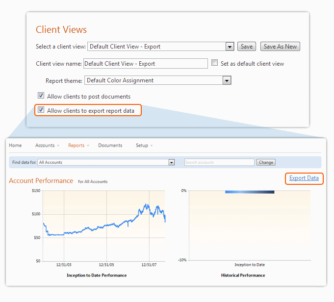Savvy clients may want to export their dynamic reports to Microsoft Excel. With this scenario in mind, you can now specify whether or not a client can export dynamic reports to a comma-delimited file. By default, this new option is not enabled. To enable it, simply select the Allow clients to export report data check box on the Client Views page.