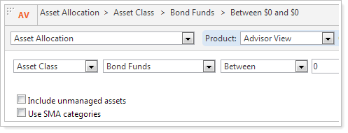 The date for the Asset Allocation composite saved search filter is now relative to the end date of the time series. In most cases, we recommend using this search filter for secondary criteria, as this search filter requires the calculation of all holdings for all accounts and may slow down your search results.