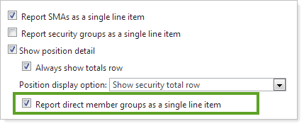 When generating your PDF Holdings report, you now have the option to report direct members as a single line item for the totals row. To do this, simply select the Report direct member groups as a single line item check box.