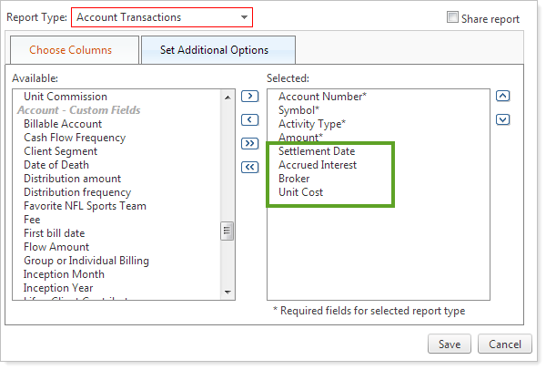 If you manage accounts in Advisor View, you have the option of creating custom fields, such as date of death, client segment, distribution frequency, and more. Now, you can export these custom fields on the Account Information bulk report.