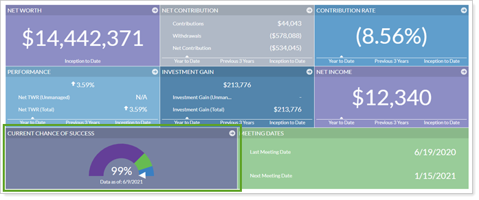 One way you can show your value to clients is by adding a MoneyGuide probability of success meter as a client portal dashboard tile, giving a visual representation of the client's financial plan progress. With this release, if data is more than 18 hours old, the Financial Plan Summary report and client portal MoneyGuide data points like the success meter automatically update, giving confidence that the meter reflects the most recent data.