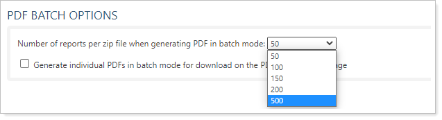 To speed up your quarter-end reporting workflow, we've expanded the number of PDF reports you can include in a ZIP file to a maximum of 500. For example, if you want to generate PDF reports for 1,000 accounts, you can set Number of reports per zip file when generating PDF in batch mode to 500 and Tamarac produces two ZIP files, each containing 500 reports. Find this option under System Settings in PDF Batch Options.