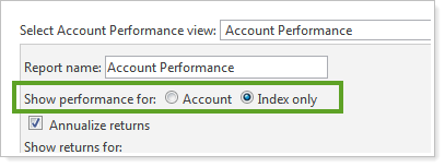 Report on index performance instead of account performance