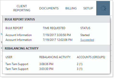 Track report progress and download completed bulk reports by clicking the