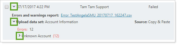 An error indicates that the data wasn't accepted. A warning indicates the upload at least partially succeeded, but there were issues you might want to be aware of. If errors or warnings aren't addressed, this can cause clients' accounts to have incorrect values.
