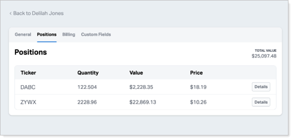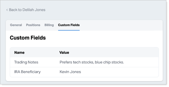 Custom fields. See unique identifiers with Tamarac custom fields in each client’s financial profile.
