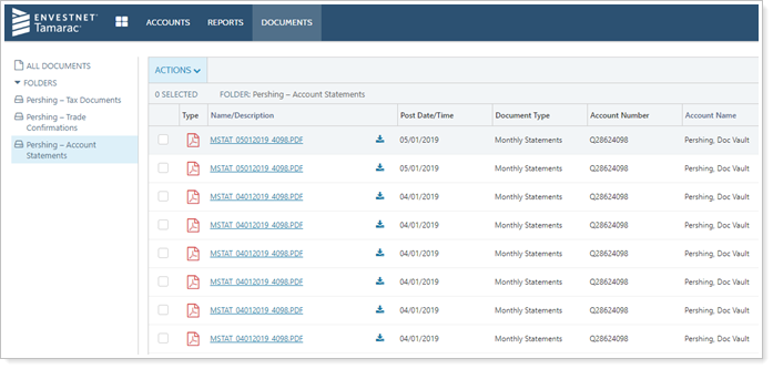 3. Once Pershing has completed their setup, you'll automatically start seeing Pershing files in your Tamarac document vault.