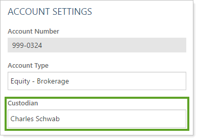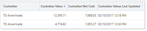 For more information, see See Custodian Values on the Accounts Page.
