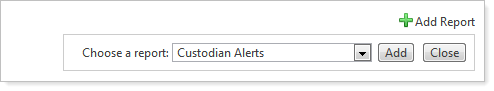 1. In the Choose a report list, click Custodian Alerts and then click Add. Tamarac Reporting adds the Custodian Alerts module to your dashboard.