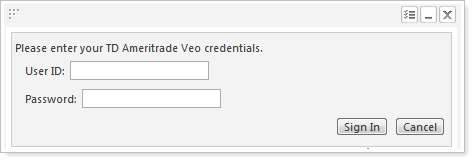 1. On the Custodian Alerts dashboard module, type your TD Ameritrade Veo® credentials and then click Sign In.