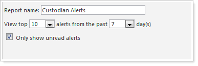 View top ___ alerts from the past ___ day(s) Choose the number of alerts and days for the custodian alerts to appear on the dashboard.