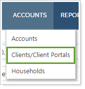 1. On the Accounts menu, click Clients/Client Portals.