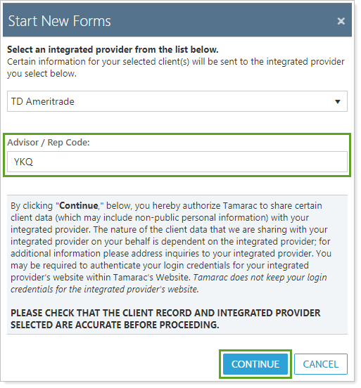 5. Enter your Advisor/Rep Code and click Continue.