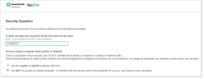 8. Optional: If required, complete the security question form and click Continue.