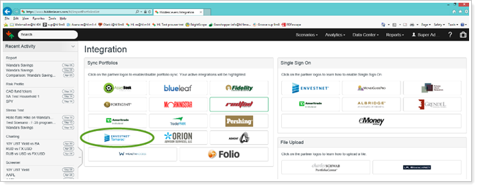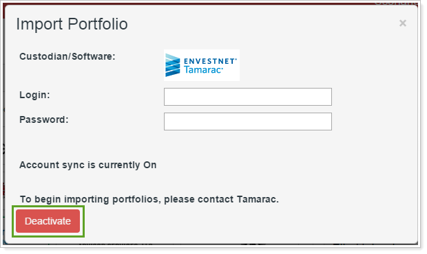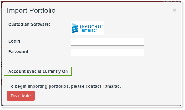 On the Integration page, under Sync Portfolios, click Envestnet | Tamarac.