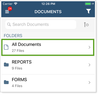 To see all files within the document vault, tap All Documents.