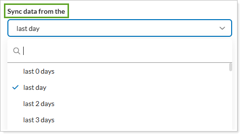 Choose the Sync data from time period you would like.
