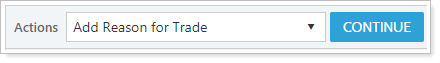 You can add a trade note to any account or group you're viewing on the Rebalance Review by choosing Add Reason for Trade in the Actions list. This lets you add relevant trading documentation to the chosen account or accounts.